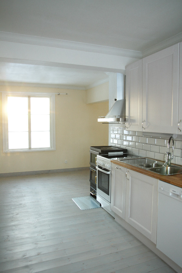 Keittiö: ruokapöytä, jääkaappi-pakastin, keittolevy, micro, vedenkeitin, paahdin.