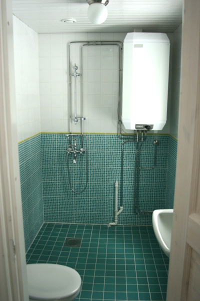 Talossa ei omaa suihkua, mutta tilan puulämmitteistä saunaan saa käyttää. Parin sadan metrin päässä myös hiekkapohjainen uimaranta.